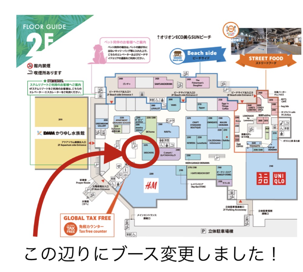 2F吹き抜け周り、スケッチャーズ(靴屋さん)の前のブースです!