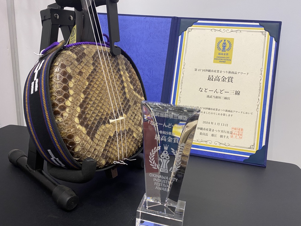 第47回沖縄市産業まつりにて当店の「なとーんどー三線」が「新商品アワード」最高金賞を受賞いたしました!