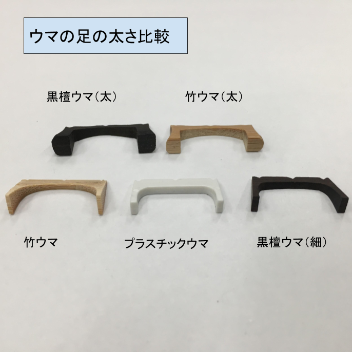 ウマは足(皮に接する面)が太いと音も太く、細いと音も細くなります。